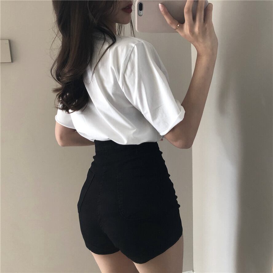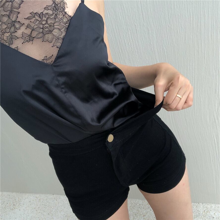 パンツ サマー薄手ブラックハイウェストウェストスリムショーツ 夏物 ブルマー スーパーモール6559574033