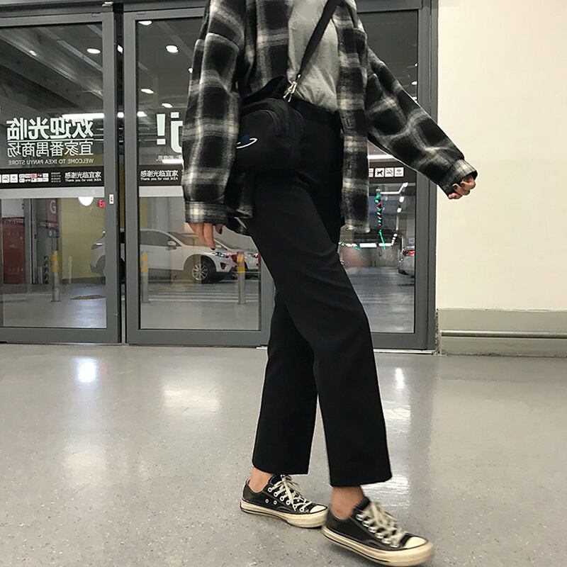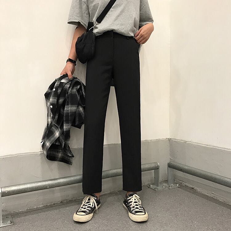 ブラックカジュアルパンツ レディースハイウェストルーズ薄手 スーパーモール73546676496