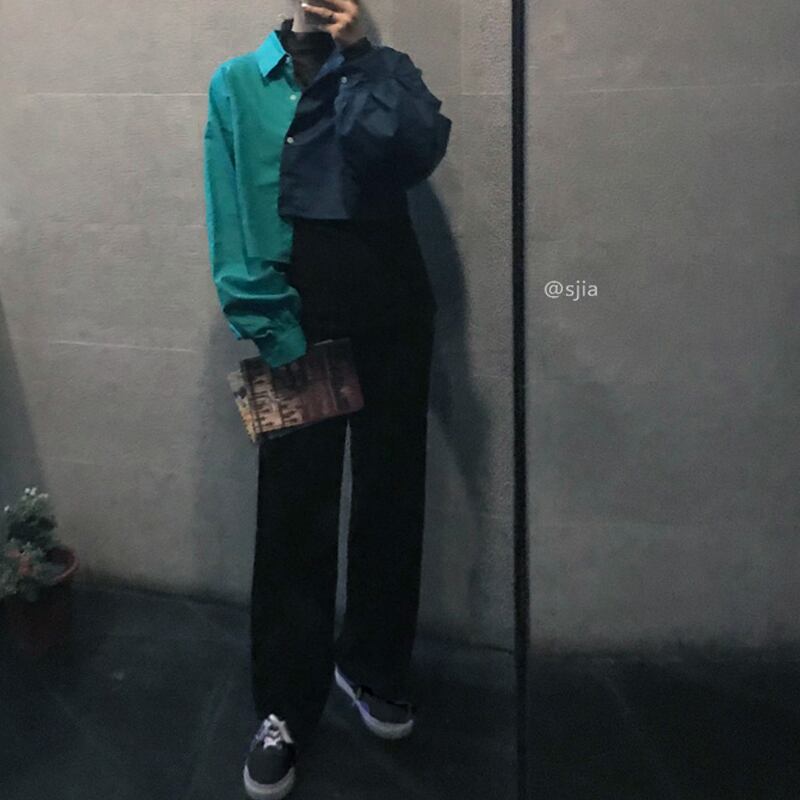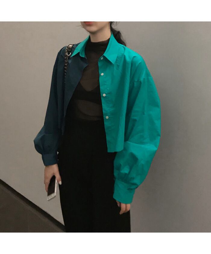 長袖スリーブシャツ レディーススプリングオータムルーズスタンダードショートトップス ロング レトロ 春物 秋物 ステッチ スーパーモール96542006895