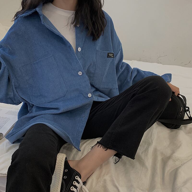 スプリングルーズコーデュロイシャツ レディーススタンダードスタイルオータムトップス ロング レトロ 春物 秋物 スーパーモール49412122932