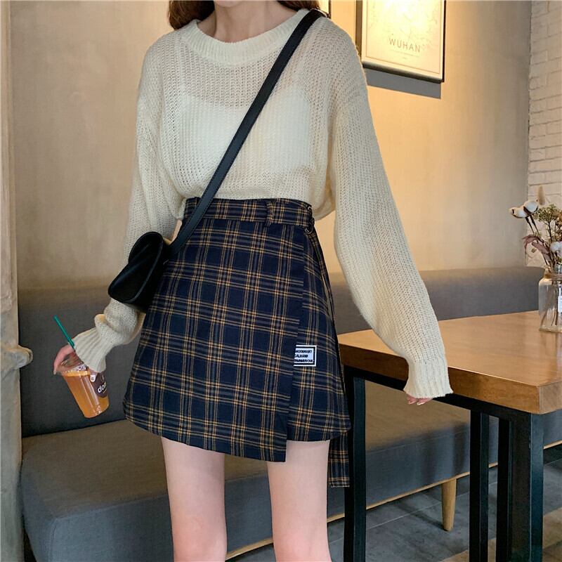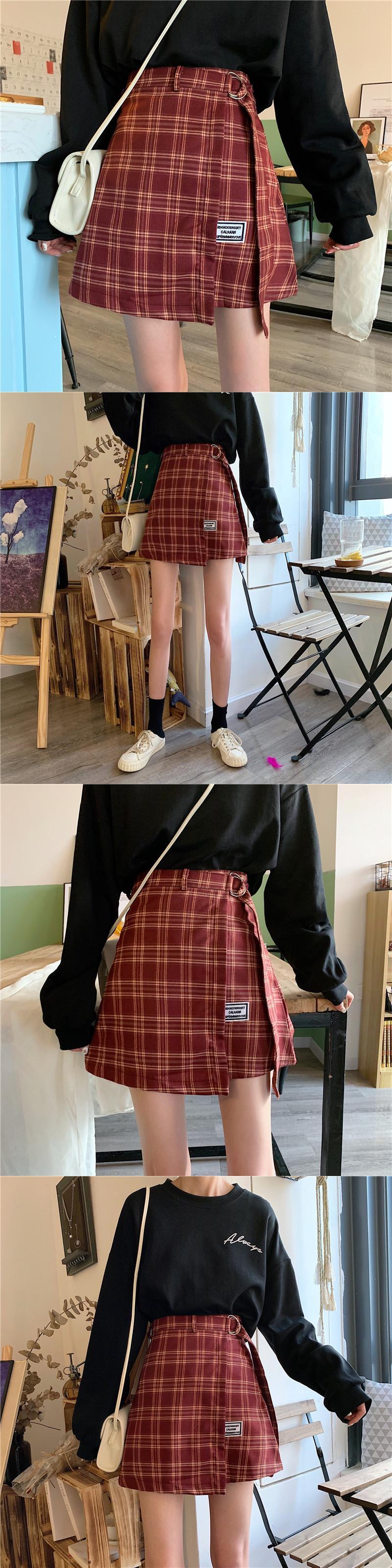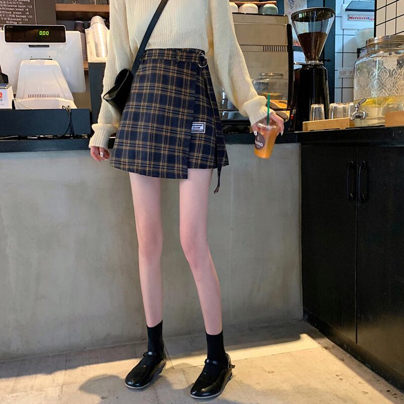 2020年春新作ハイウエストイレギュラースカートメス春・秋スカートチェック柄スカートAラインスカート春スカートショートスカートメス スーパーモール1704655734