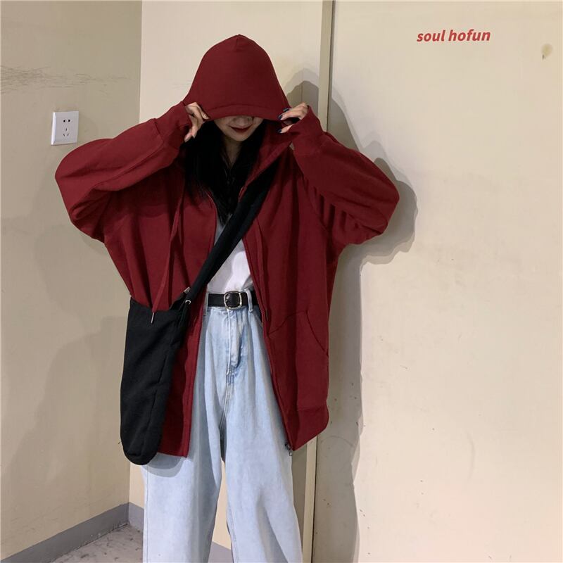 ルーズフード付きセーターレディース春ジッパー2020新バージョンのレイジースタイル長袖ジャケットインタイドトップ春と秋 スーパーモール44576570274