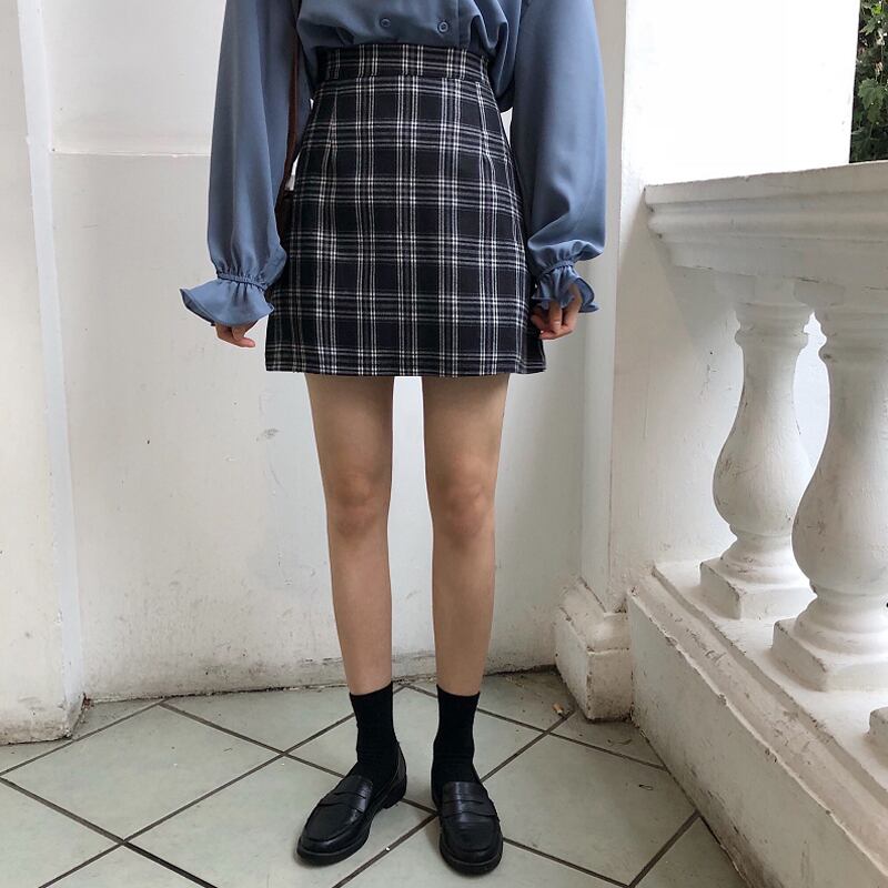 -ウエストAラインスカート2020年春秋新作スカート春秋シンパッケージヒップスカートレトロ秋チェック柄スカートメス スーパーモール62142487872