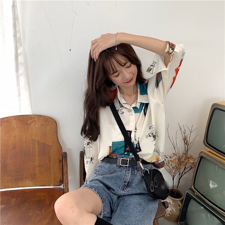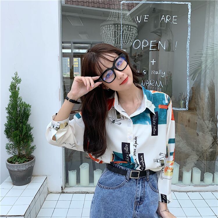 2020年秋新バージョンルーズ春秋長袖シャツ女性デザインセンスニッチレトロ香港スタイルトップシャツ スーパーモール67161921496