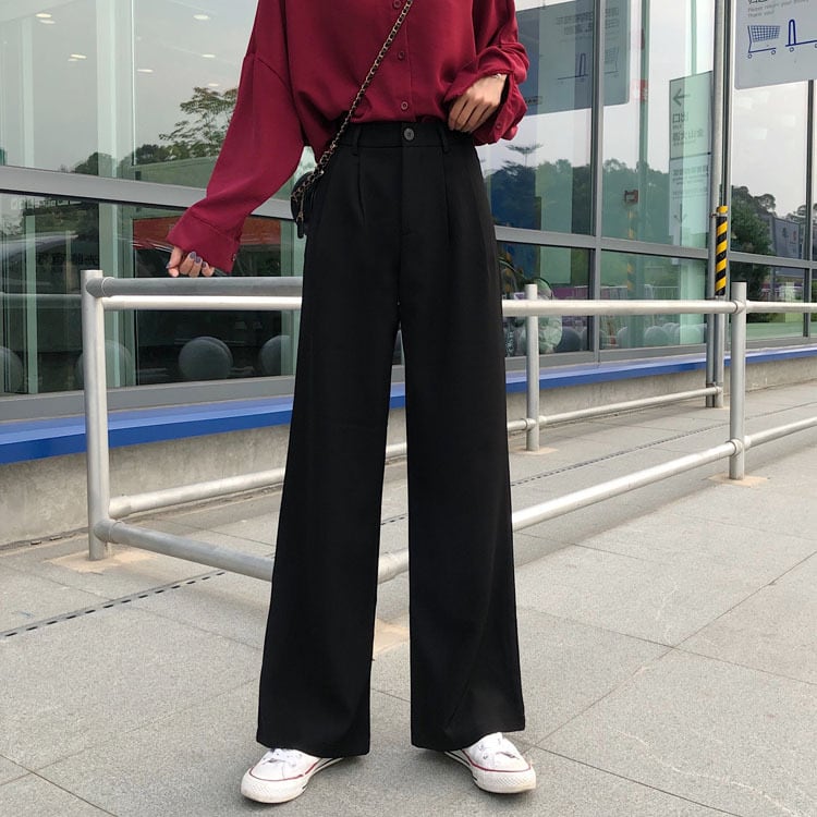 2020年秋冬新作パンツストレートレッグパンツワイドレッグパンツレディースハイウエストブラックスリムオールマッチスーツパンツドレープパンツ スーパーモール21646397843