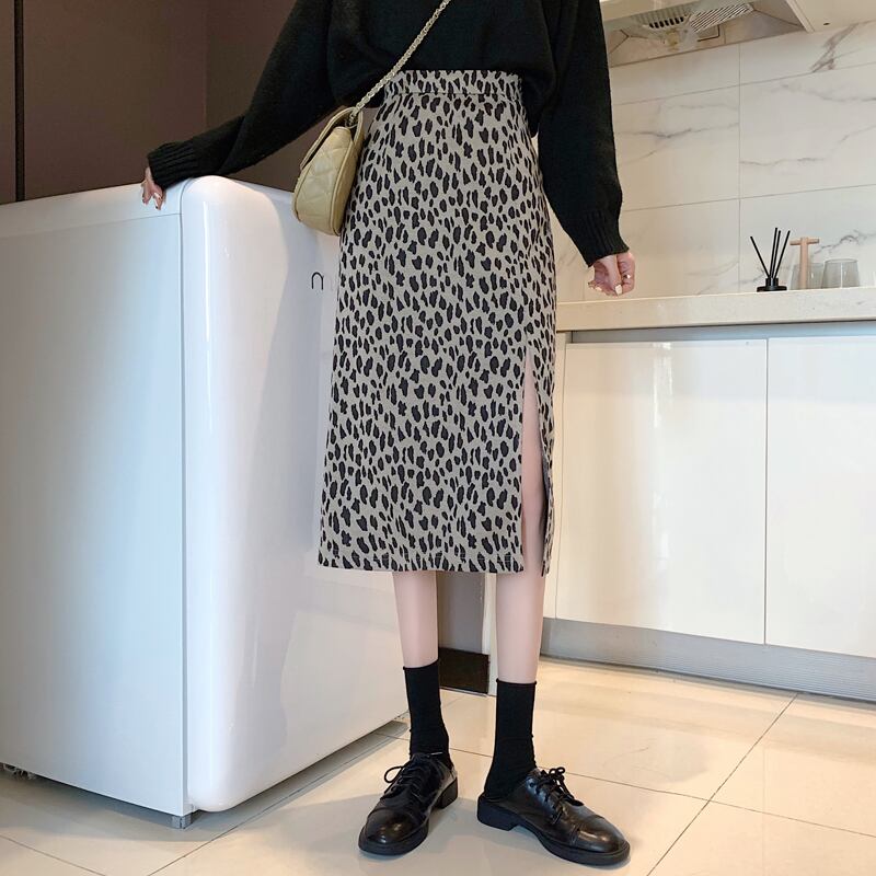 スタンダードカラーレオパードプリント柄スカート サマーレッドAライン レトロ 夏物 スーパーモール37034284993