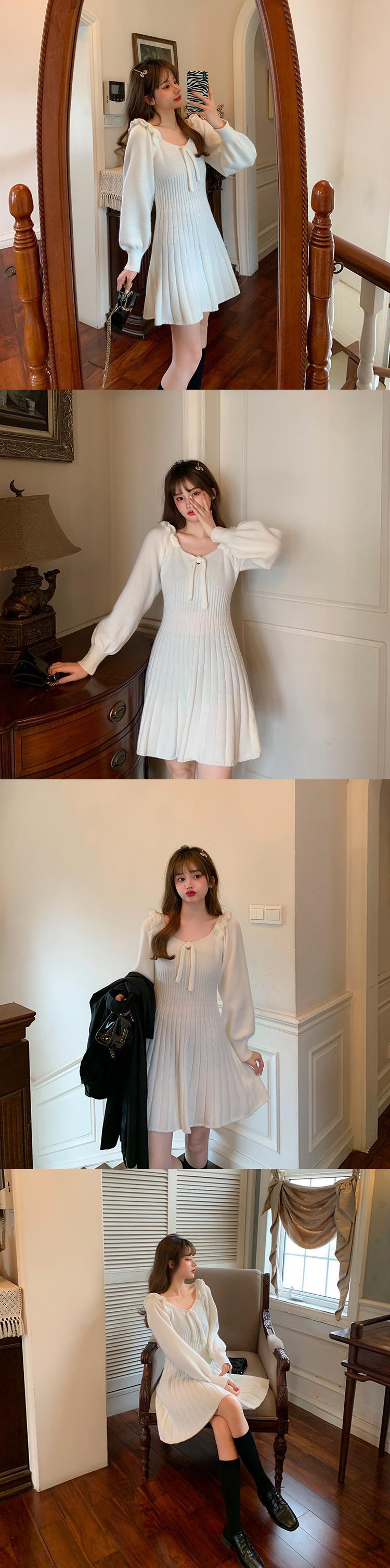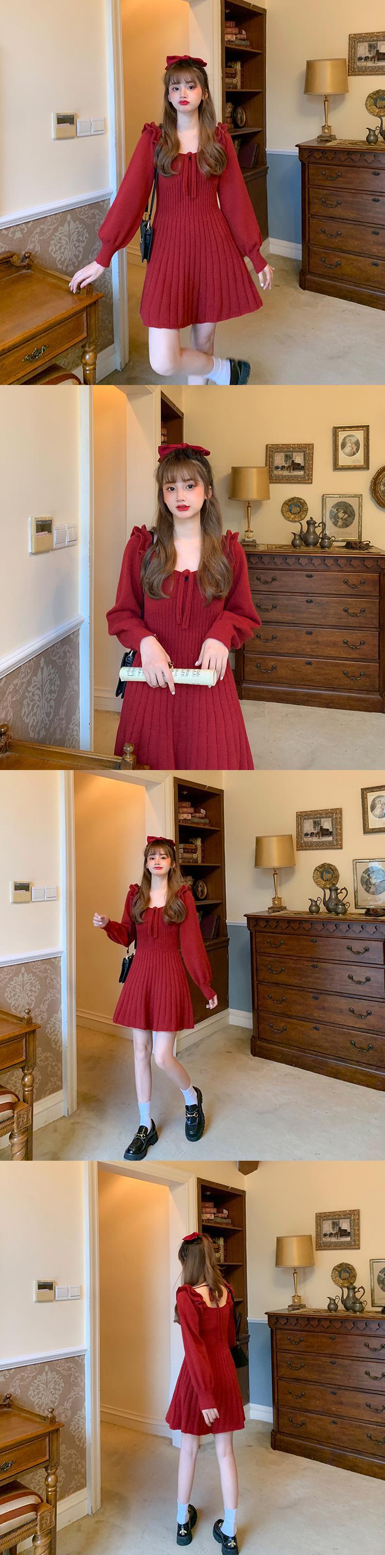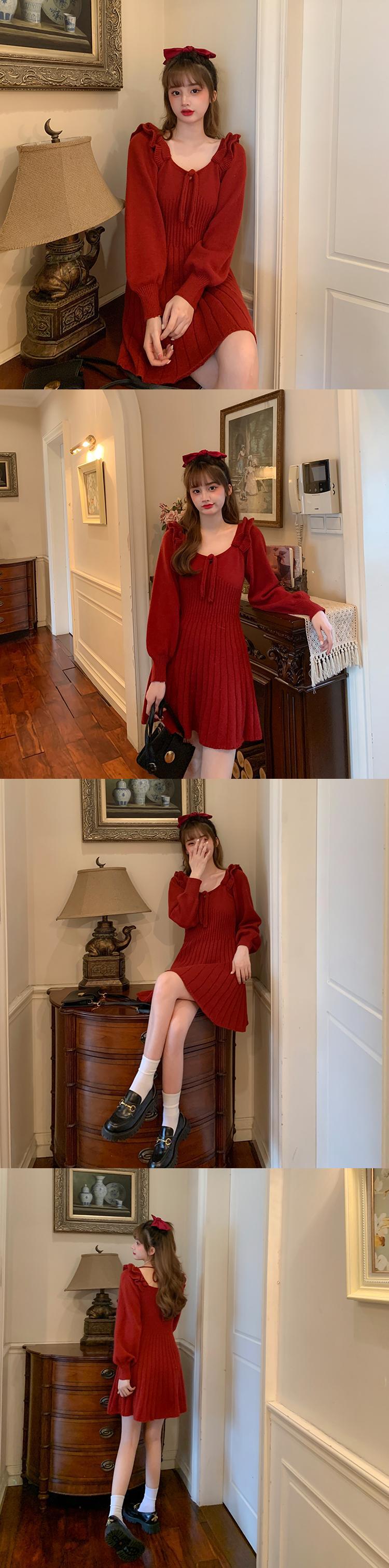 オータムウィンタースカート ウェストニットレッドカラードレス 秋物 冬物 スクウェア スーパーモール34234791536