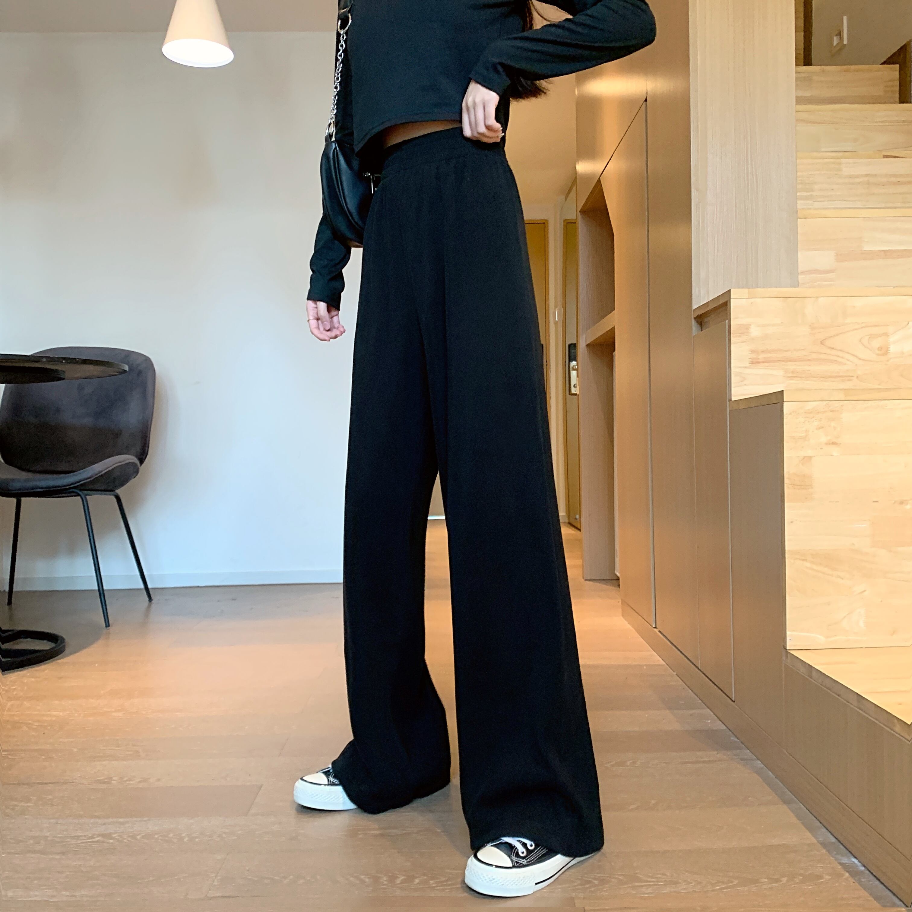 ブラックカジュアルパンツ オータムウィンタールーズ薄手ワイドレッグハイウェストウェスト 秋物 冬物 ワイドパンツ スーパーモール52816202474