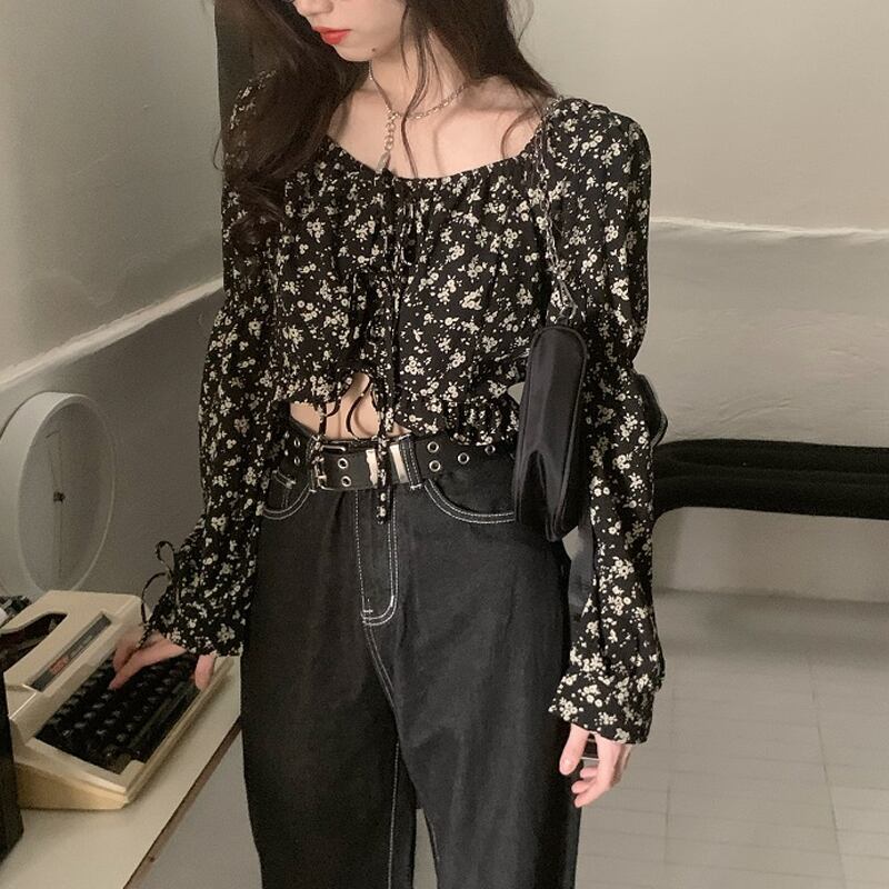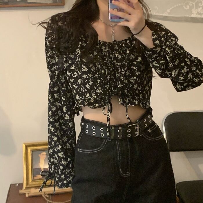 スプリングスタンダードスタイルショートトップス フローラルシャツ ロング レトロ 春物 花柄 スーパーモール89060314764