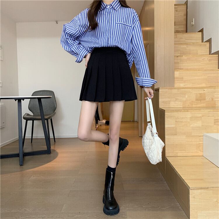 サマーソリッド カラープリーツスカート ハイウェスト薄手Aラインショート 夏物 ソリッドカラー スーパーモール90297840039