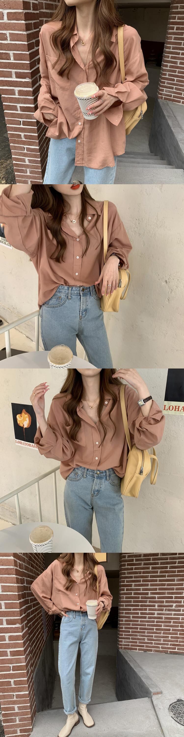 スプリングスタンダードルーズスリムソリッド カラーシャツ ロング レトロ 春物 ソリッドカラー スーパーモール72424868839