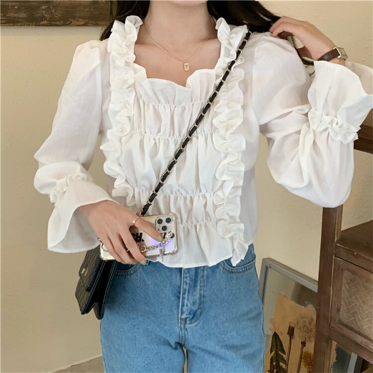 スタンダードシャツ スプリングホワイトトップス ロング レトロ 春物 スーパーモール58248701522