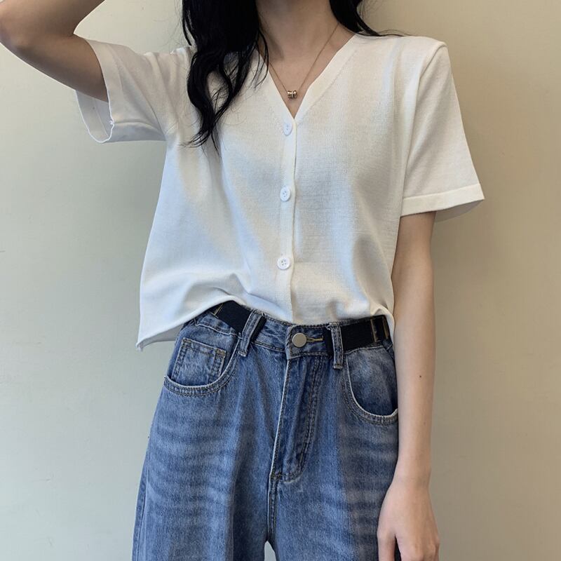 ショートカーディガンスプリングルーズVネックセーター レディース 春物 スーパーモール92682455230