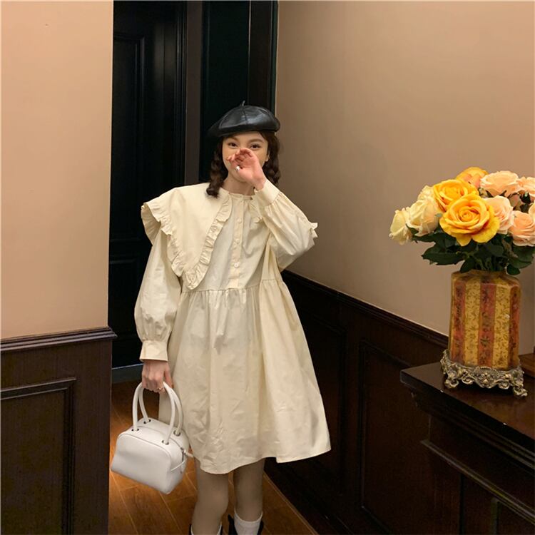 ホワイトドレス スプリングオータムスタンダードシャツ スカート ショート ロング レトロ 春物 秋物 スーパーモール26922349184