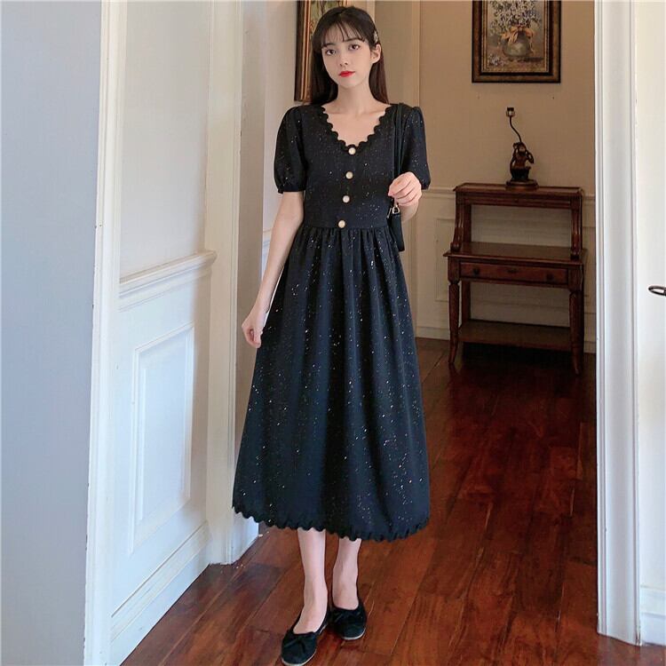 スタンダードスリムドレス サマースタイルブラックロングスカート レトロ 夏物 スーパーモール88685119452