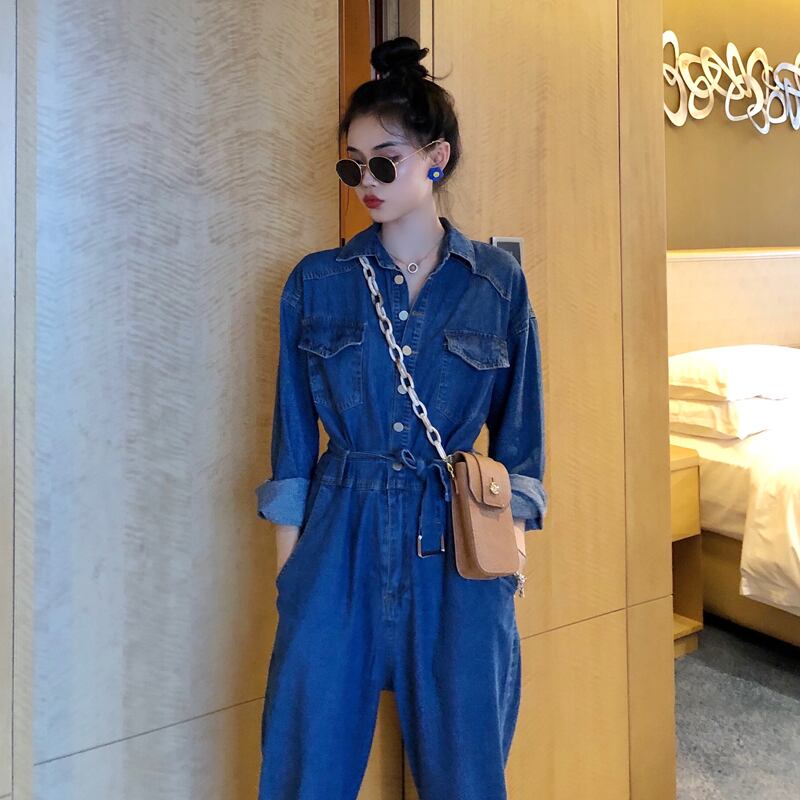 スプリングオータムスタイルジャンプスーツ オールインワン ポケットルーズジーンズ ロング 春物 秋物 スーパーモール91204982356