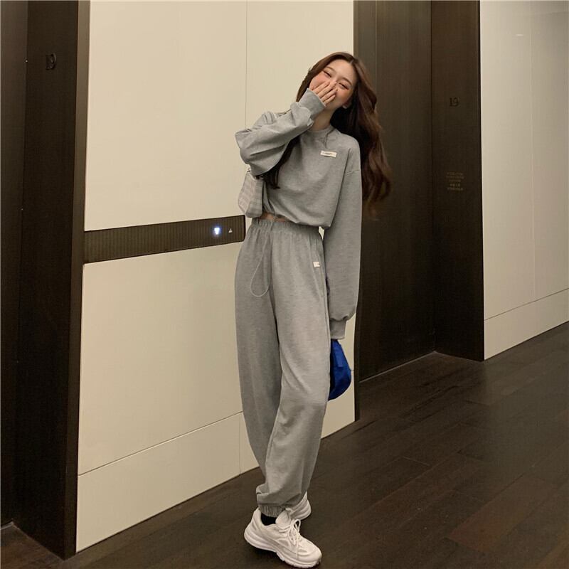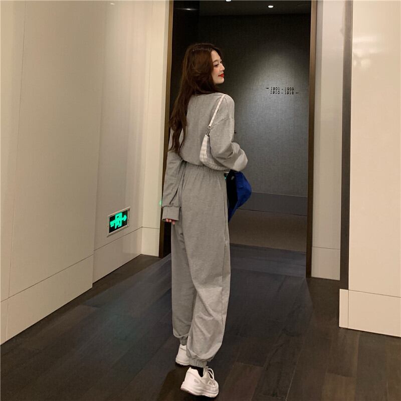 グレーカジュアルスプリングセーター ハイウェストウェストパンツ コルセット ストリート 春物 スーパーモール74459264370