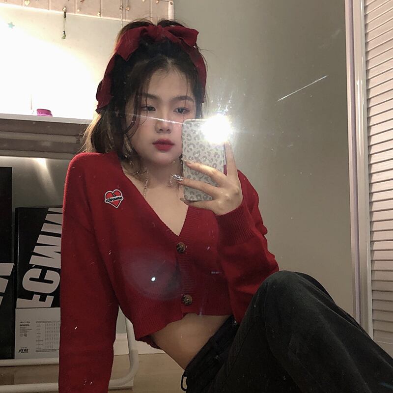 カーディガンセーター スプリングオータムルーズスタイルレッド 春物 秋物 スーパーモール99595135194