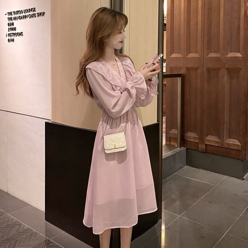 Vネックドレス サマースタイルAラインスカート ロング 夏物 スーパーモール83768306714