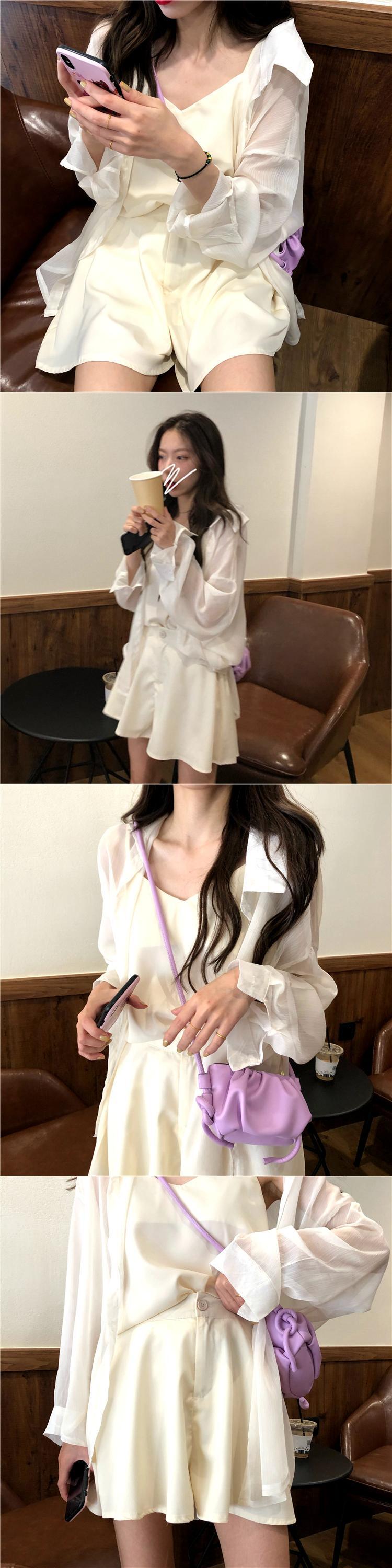 スプリングレディースルーズ薄手シャツ ハイウェストウェストワイドレッグショーツ 春物 ブルマー ワイドパンツ スーパーモール92278912417