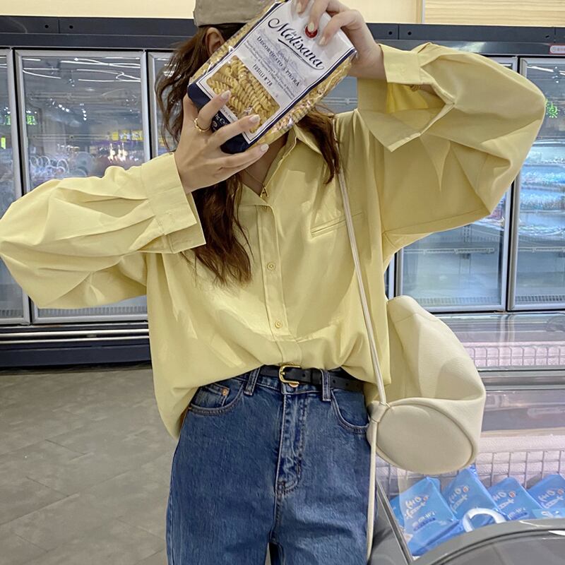 ホワイトシャツ スプリングスタンダードスタイル ロング レトロ 春物 スーパーモール1303956510