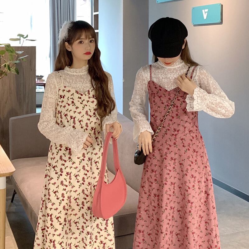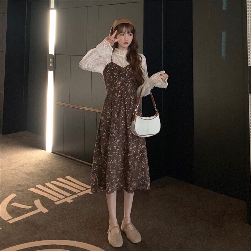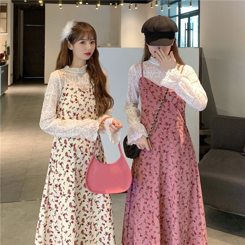 スタンダードコーデュロイフローラルドレス サマースカート レースシャツ レトロ 夏物 花柄 スーパーモール30910497065