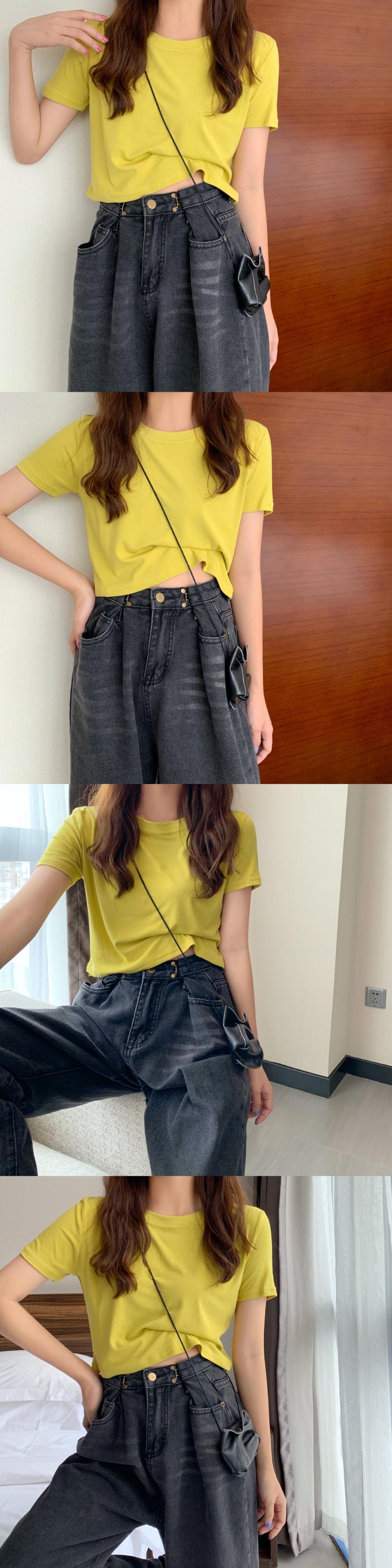 ルーズラウンドネックソリッド カラーショートトップス サマーベーシックTシャツ 夏物 Oネック ソリッドカラー スーパーモール92352915369