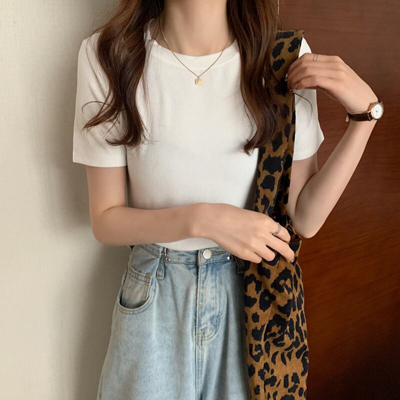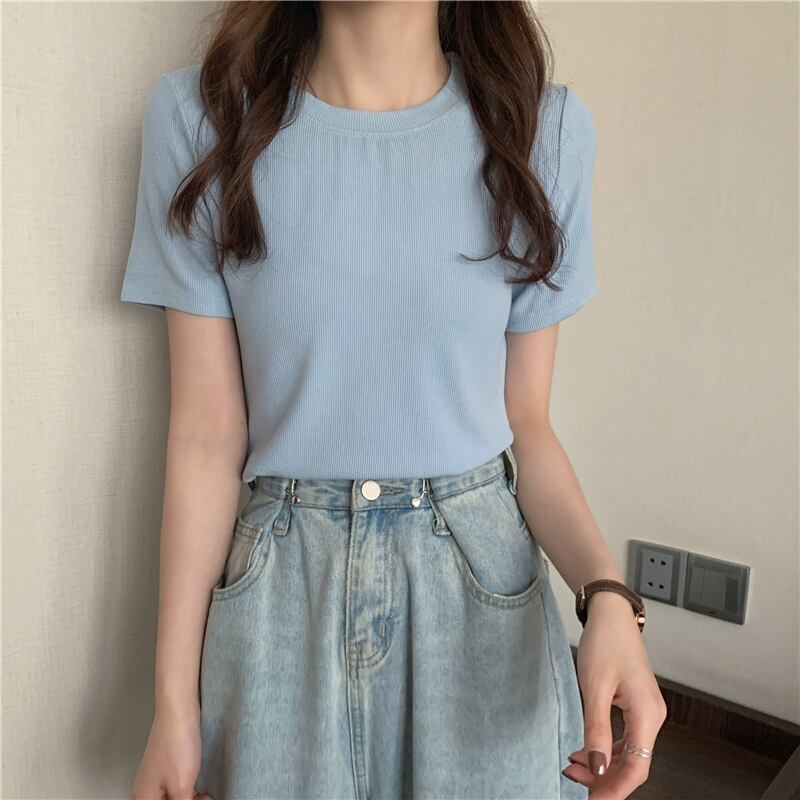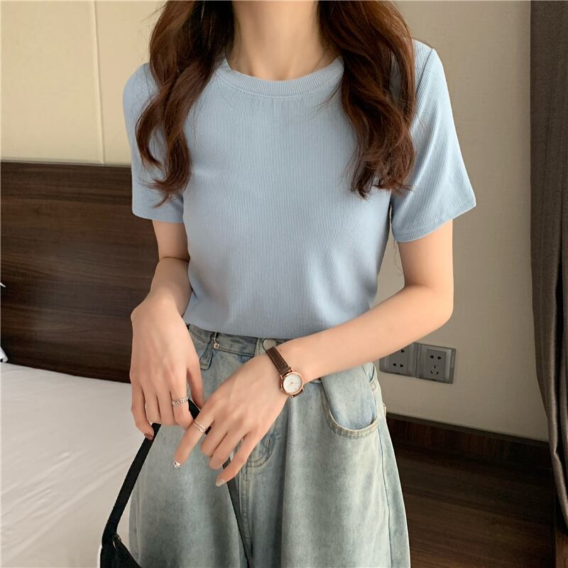 ベーシックソリッド カラーシャツ トップス スプリングショートプルオーバー Tシャツ レディース 春物 ソリッドカラー スーパーモール90796066281