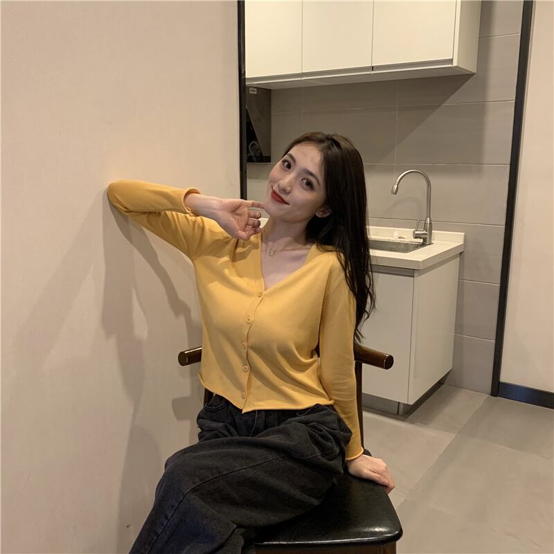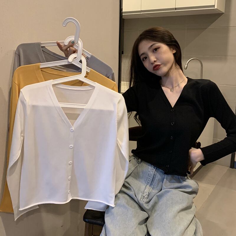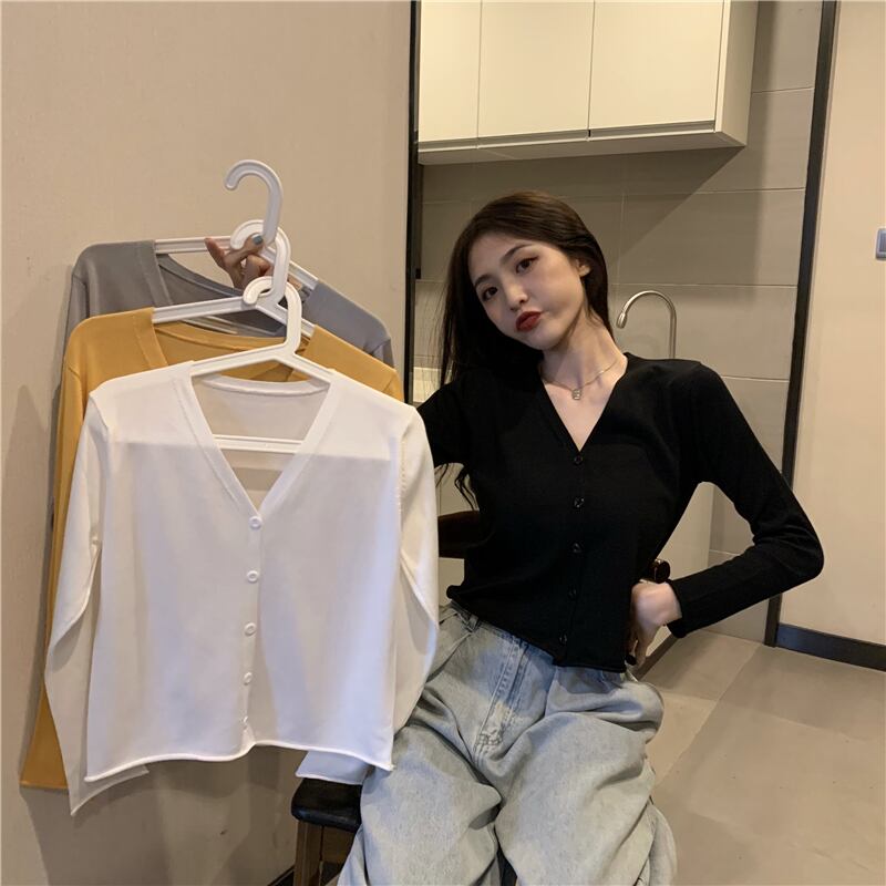 Vネックソリッド カラーカーディガンスプリングスタイルルーズ薄手セーター レディース ロング 春物 オータム 秋物 ソリッドカラー スーパーモール24588772769