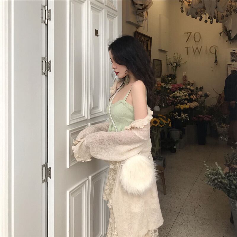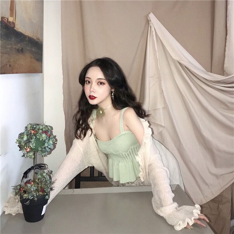 色:シングルグリーンキャミソール,レーススカートワンピース,ライトベージュカーディガンワンピース