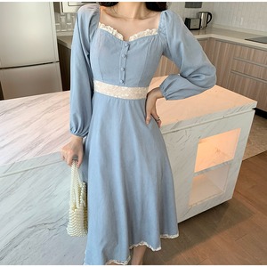 スタンダードカラードレス スプリングウェスト薄手ブルースカート レトロ 春物 スクウェア スーパーモール49831837557