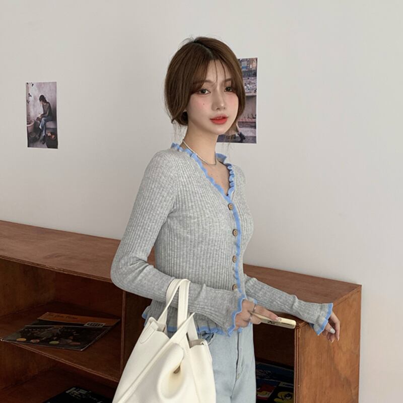 グレーブルースリムニットセーター スプリングオータムレッドトップス 春物 秋物 スーパーモール77123732821