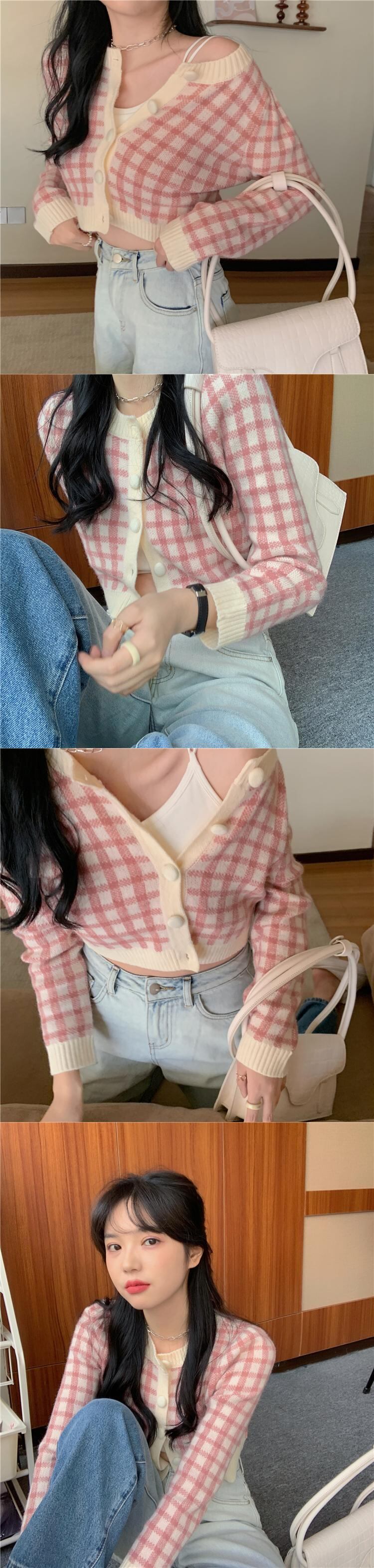 スタイル格子柄セーター レディーススプリングオータムニットカーディガンショートトップス 春物 秋物 スーパーモール63721304938