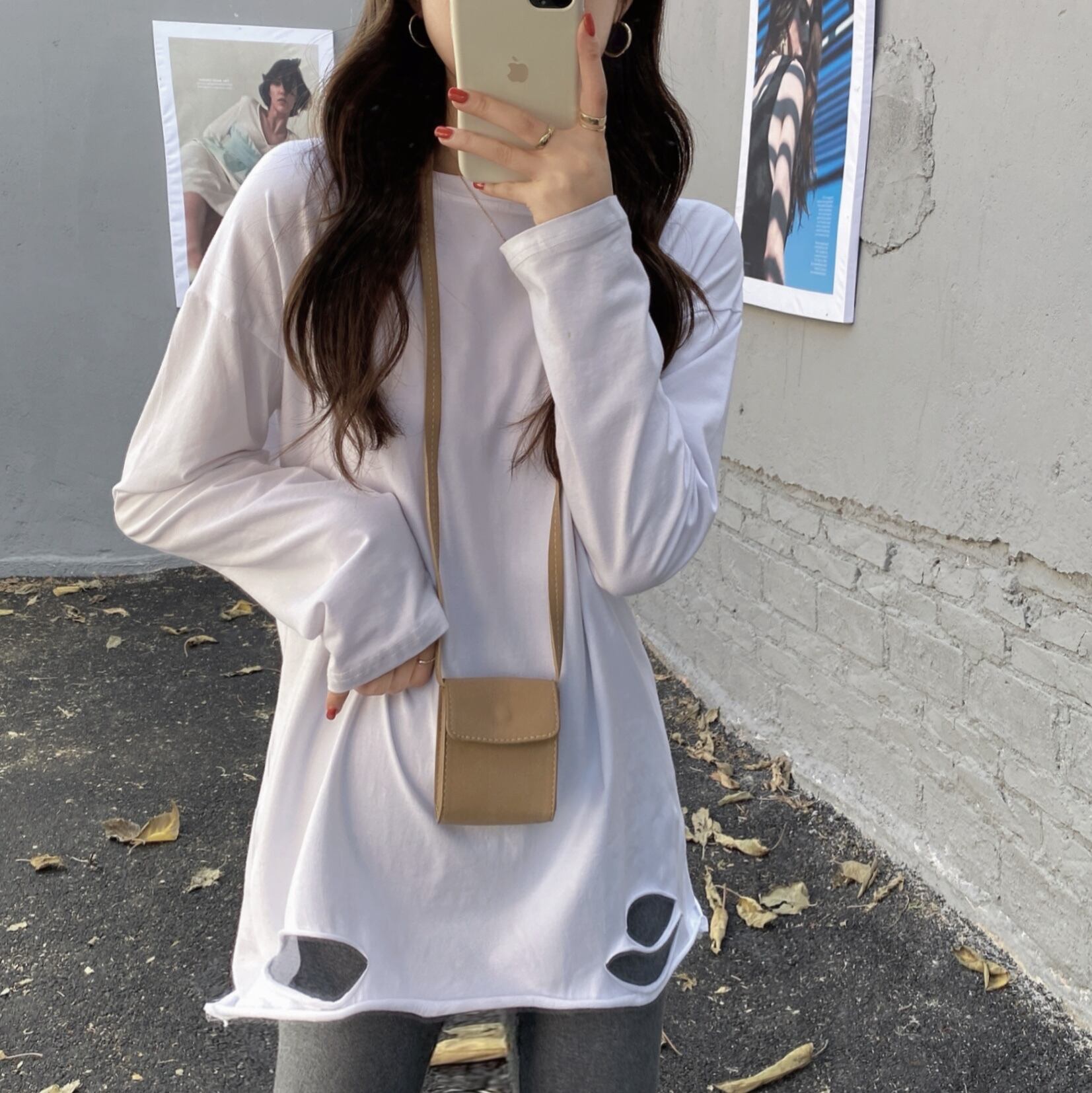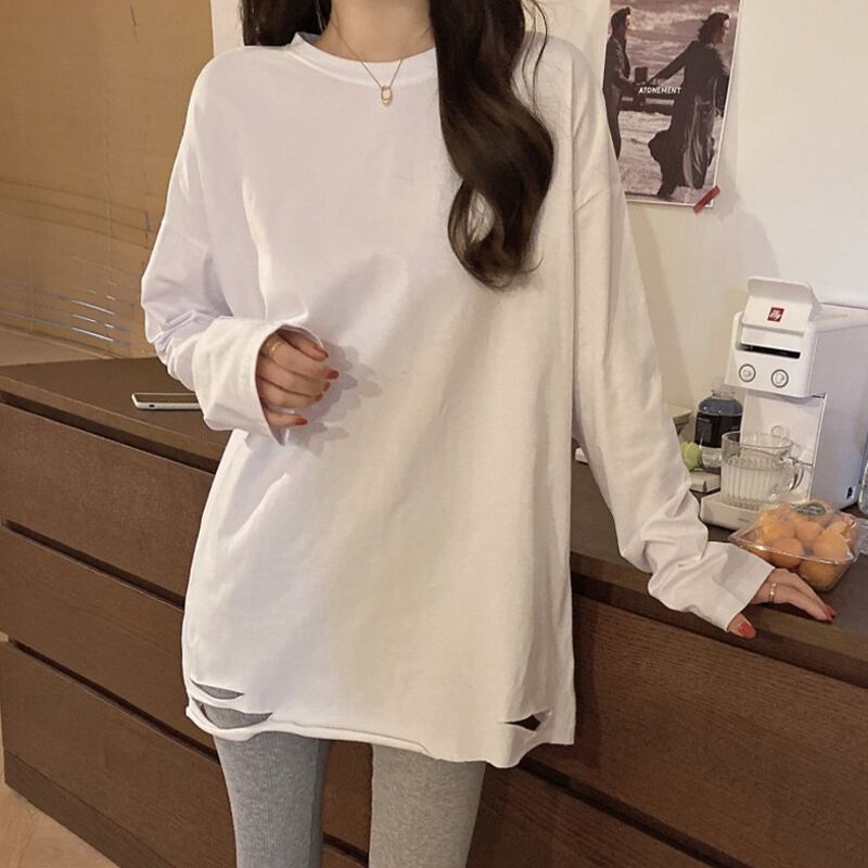 シャツ トップス スプリングスタイルルーズホワイトTシャツ レディース ロング 春物 スーパーモール15848394154