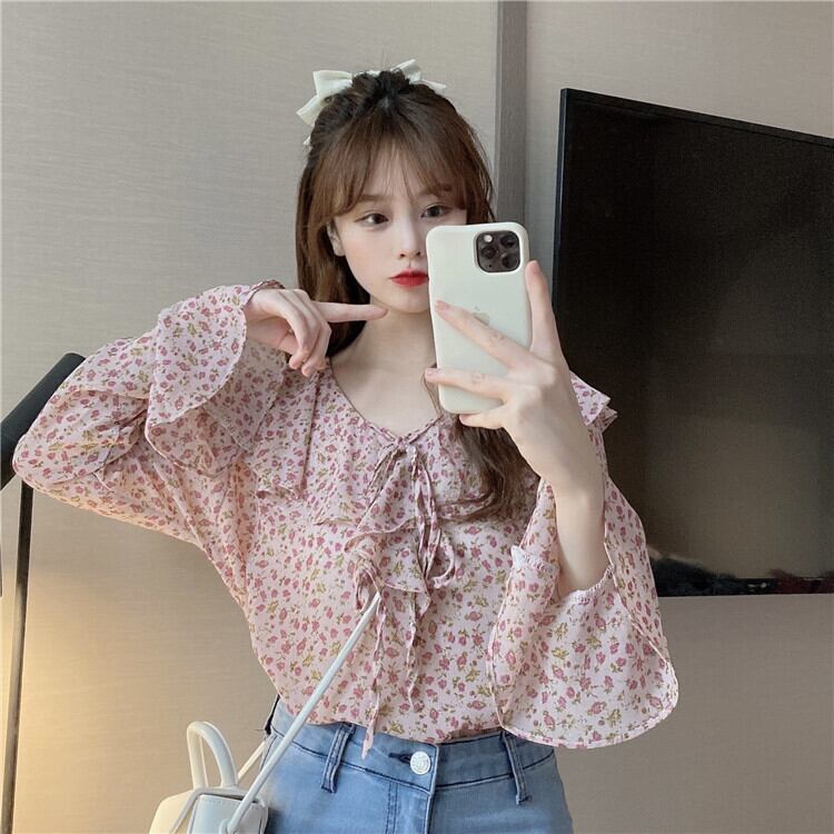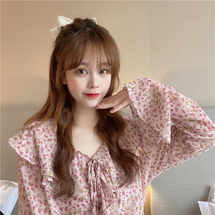 シフォンシャツ スプリングスタイルルーズトップス ロング 大人ガーリー スウィート キュート カジュアル 春物 スーパーモール30308049734