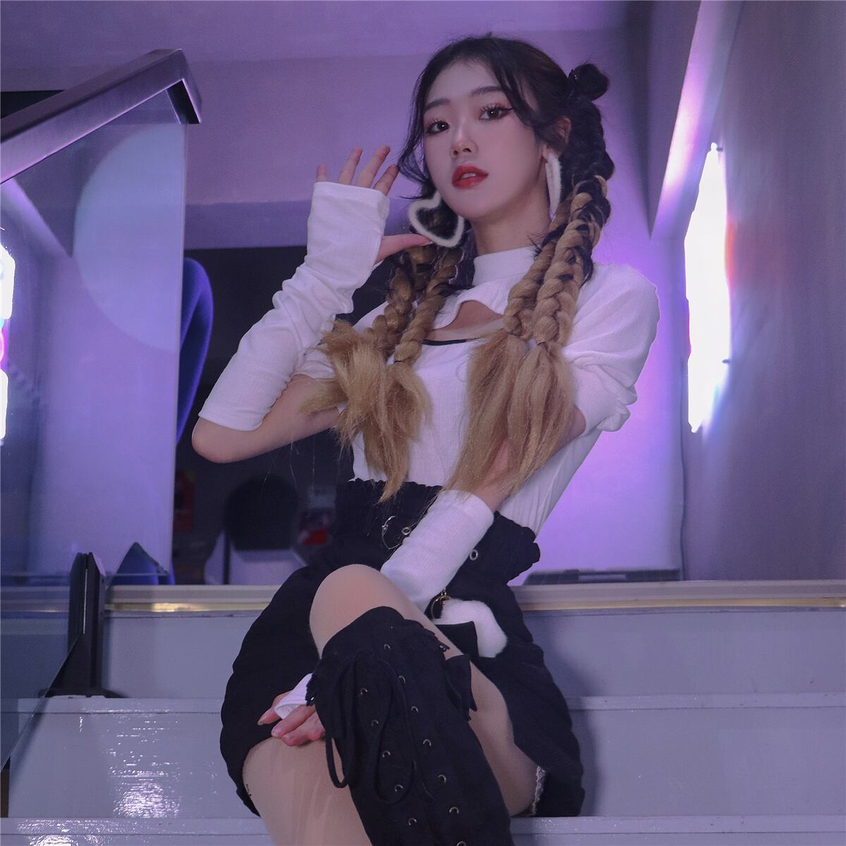 色:ホワイトTシャツシングルピース,黒スカートワンピース