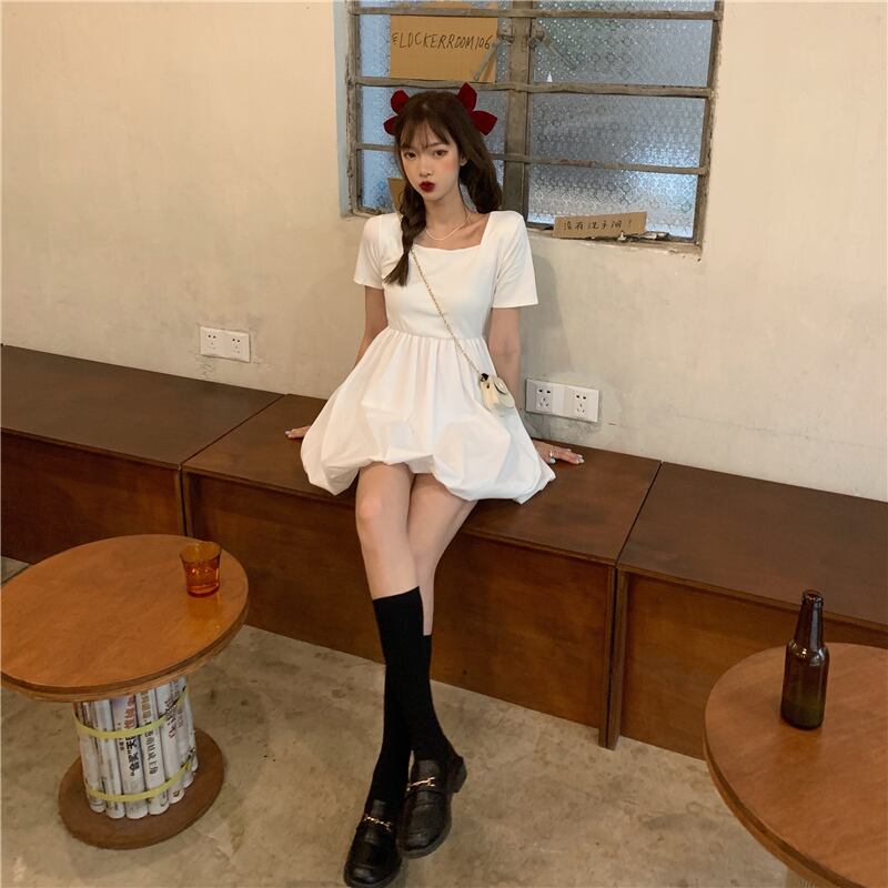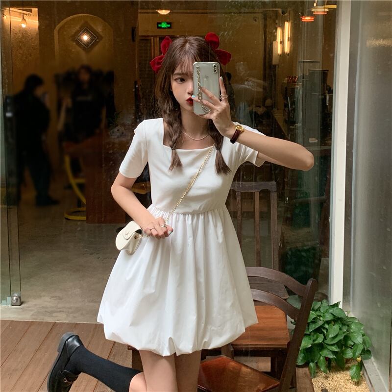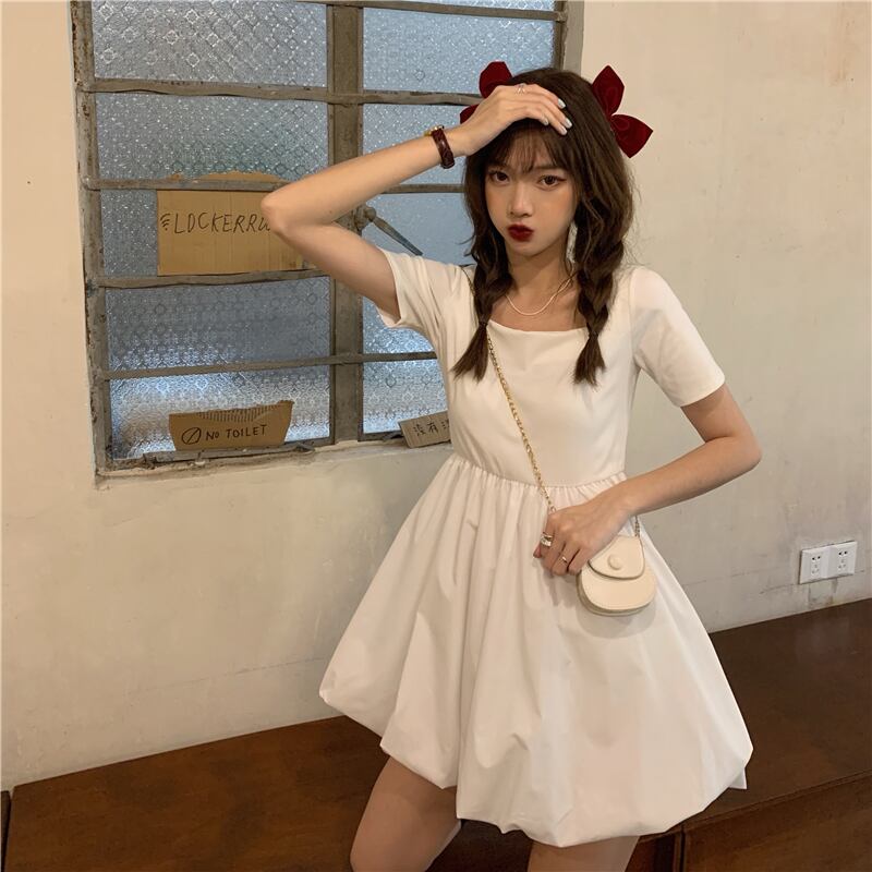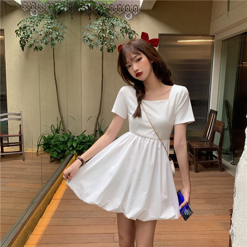 サマースカート カラーAラインホワイトドレス 夏物 スクウェア スーパーモール59738630984