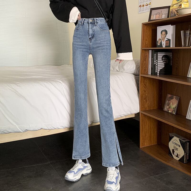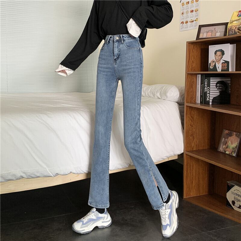 ハイウェストウェストパンツ スプリングジーンズ レディース薄手 レッド 春物 スーパーモール36860700992
