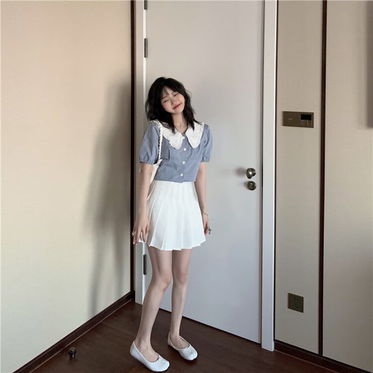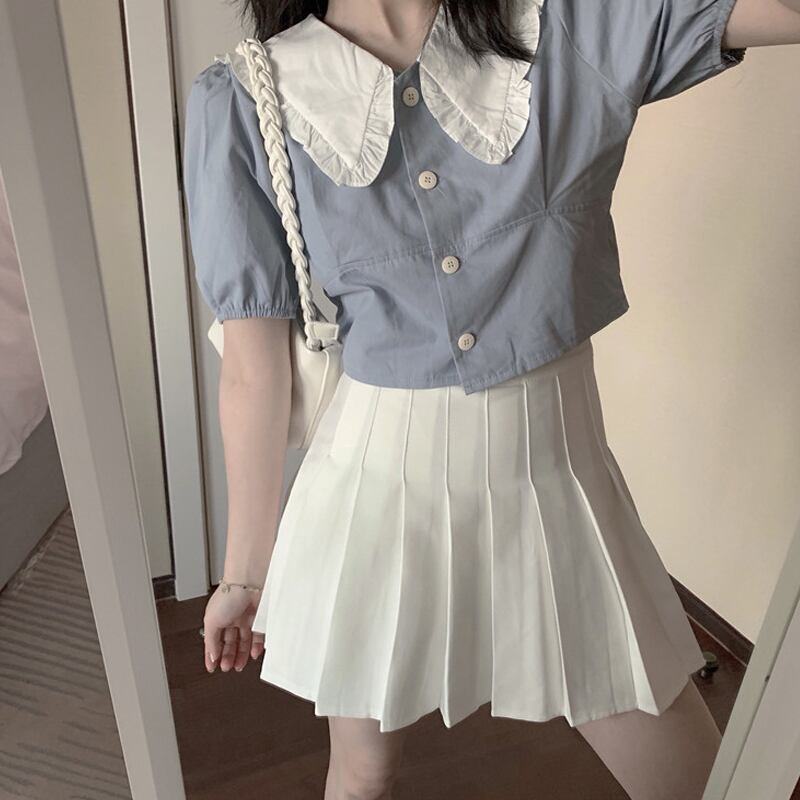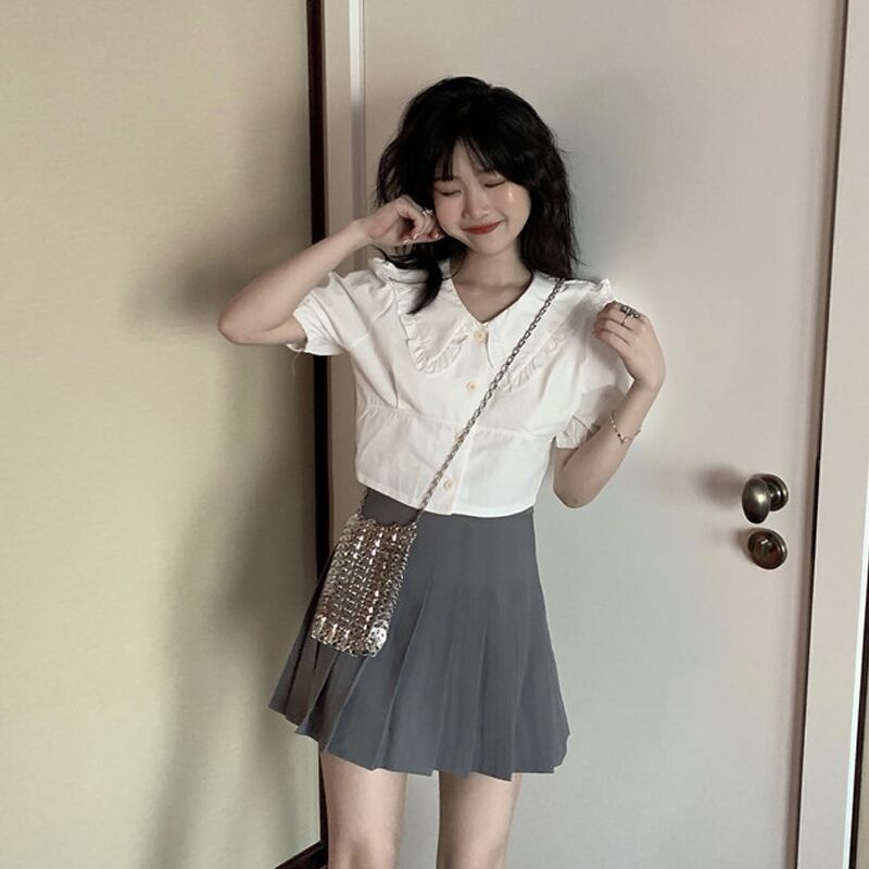 スプリングスタイルショートシャツ プリーツスカート ストリート 春物 スーパーモール41617916606