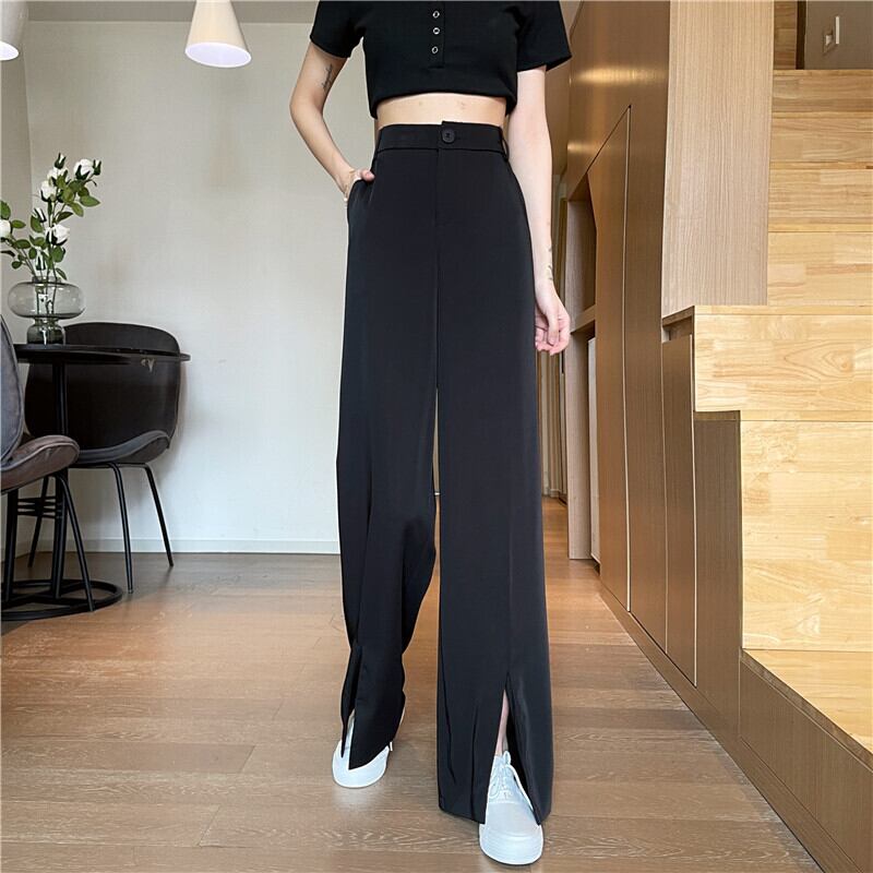 スプリングオータムブラックルーズ薄手ハイウェストウェストカジュアルパンツ 春物 秋物 スーパーモール17981970273