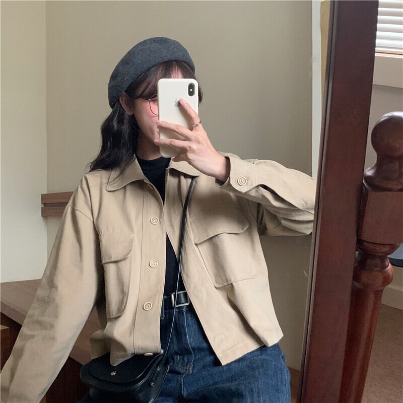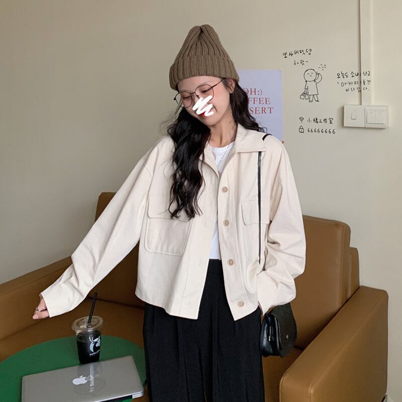 スタイルルーズスタンダードカジュアルジャケット スプリングオータムクロップトップ トップス レトロ 春物 秋物 スーパーモール84381075105