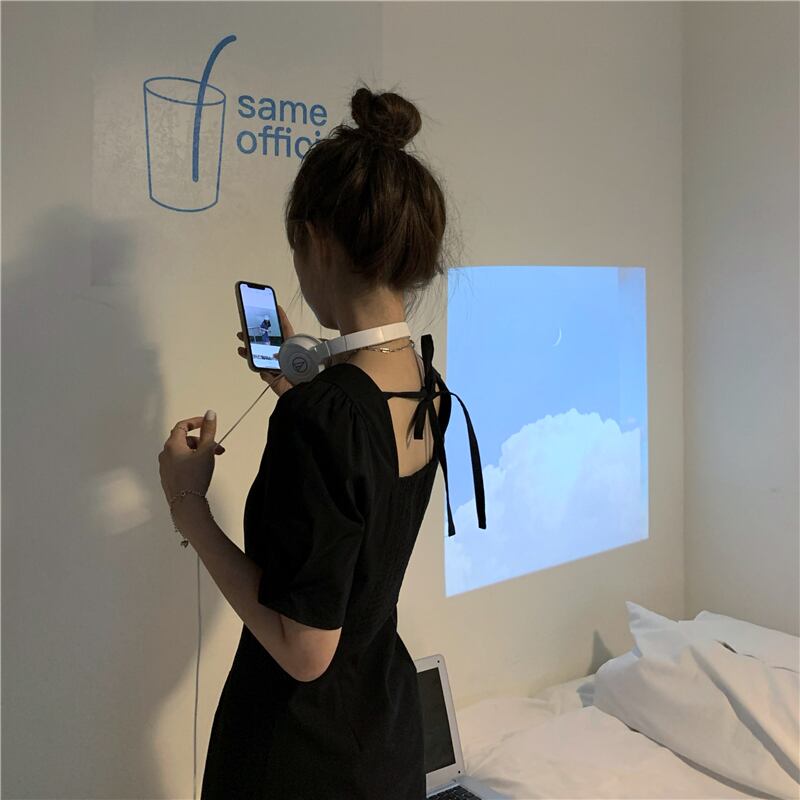 スタンダードスタイルドレス サマースリーブブラック レトロ 夏物 スクウェア スーパーモール40285082876