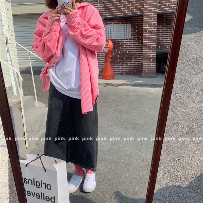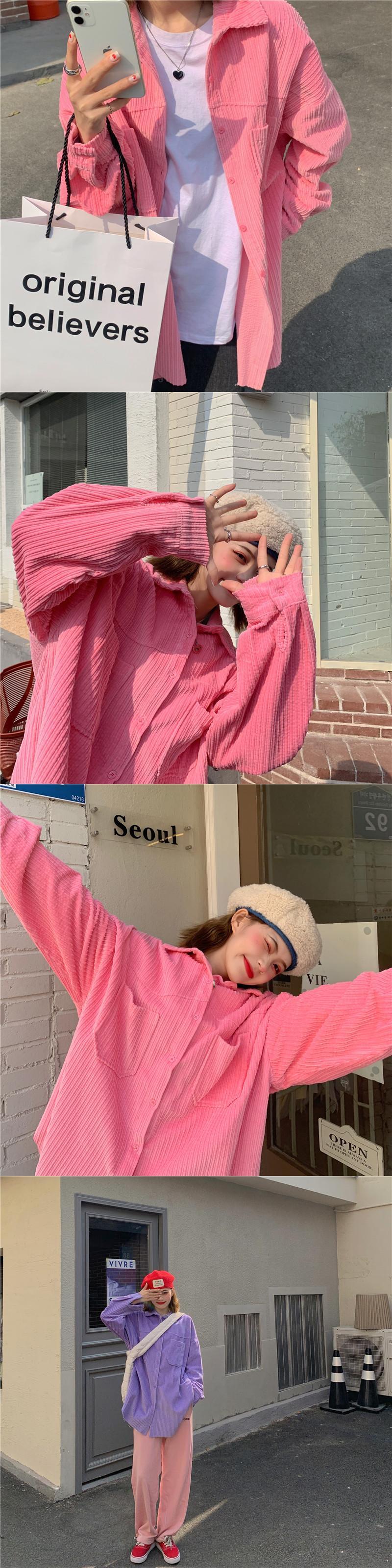 スプリングジャケット スタイルコーデュロイシャツ ルーズ ロング 春物 パープル スーパーモール20509079243