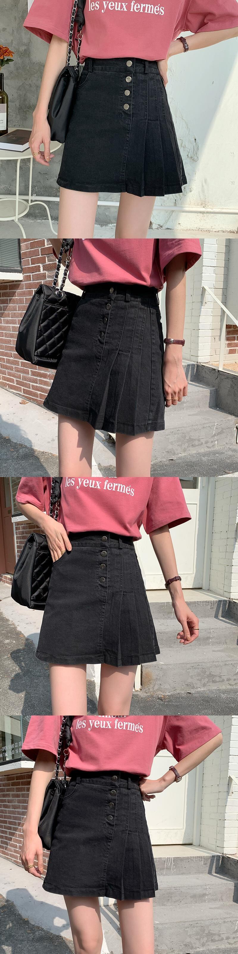 プリーツスカート スプリングオータムハイウェストAラインショート薄手ブラック 春物 秋物 スーパーモール22320446260