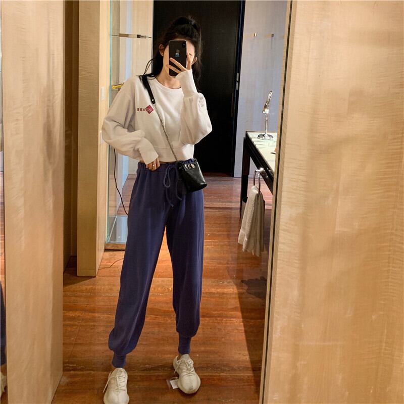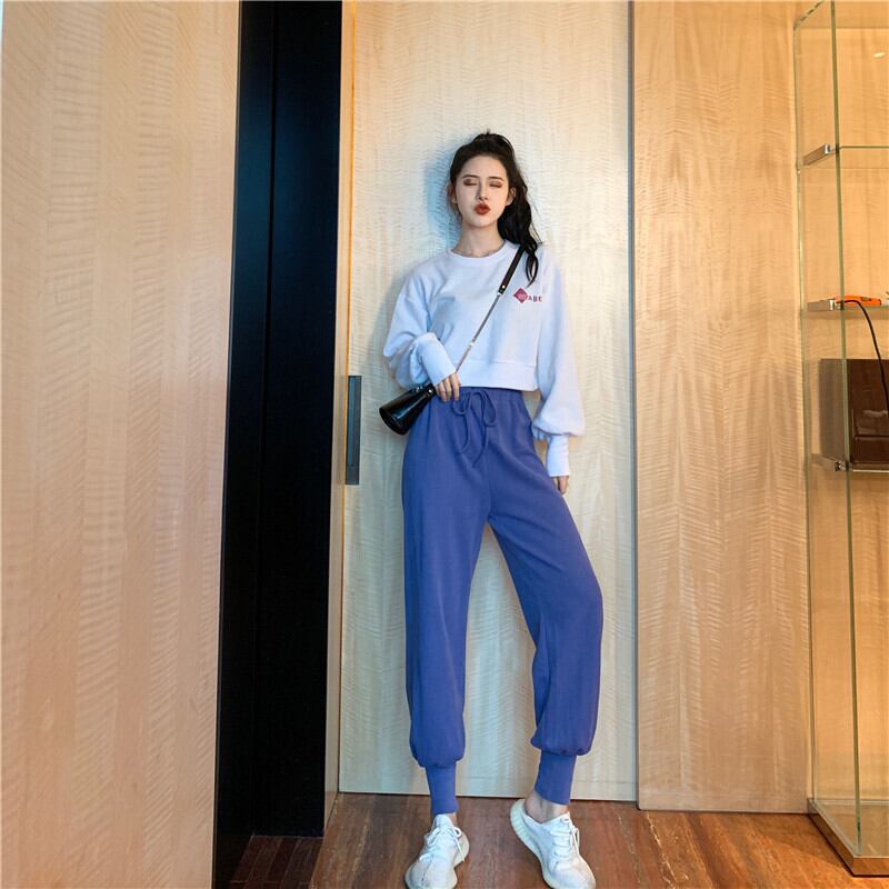 スプリングルーズショートセーター ハイウェストウェストカジュアルパンツ コルセット 春物 スーパーモール84205705162