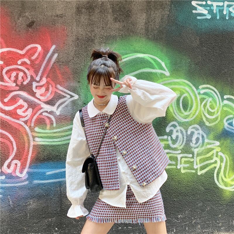 色:ワンピーススカート,ベストジャケットワンピース,白いシャツのワンピース