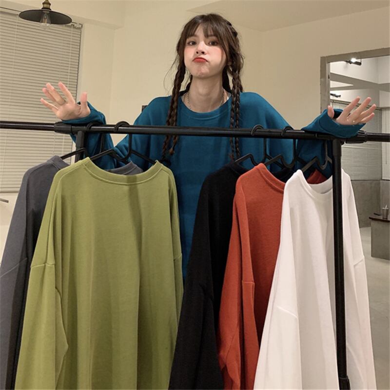 スプリングオータムルーズホワイトラウンドネックセーター ジャケット 春物 秋物 Oネック スーパーモール5790731666