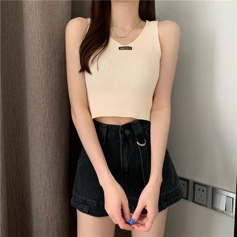 ニットサマーノースリーブトップス ショート 夏物 スーパーモール93930856075