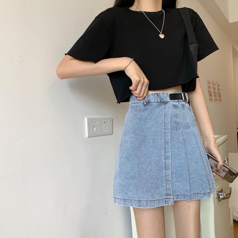 サマーブルースカート スタンダードハイウェストウェストプリーツAライン レトロ 夏物 スーパーモール7794415053
