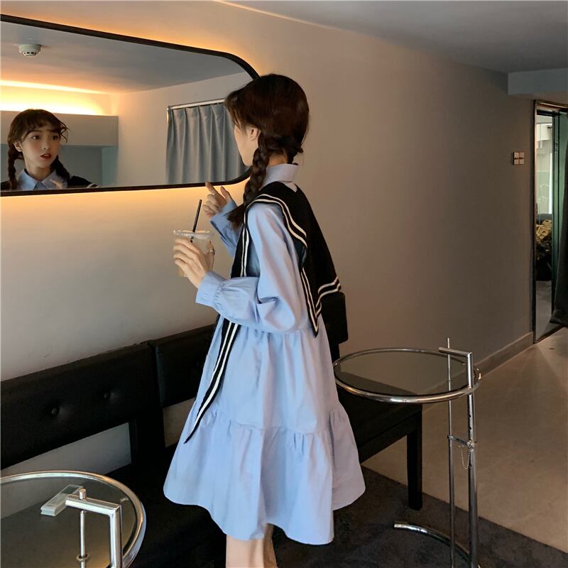 スカート スプリングセーター ネイビーカラーブルーシャツ ドレス レディース 春物 スーパーモール30479804919